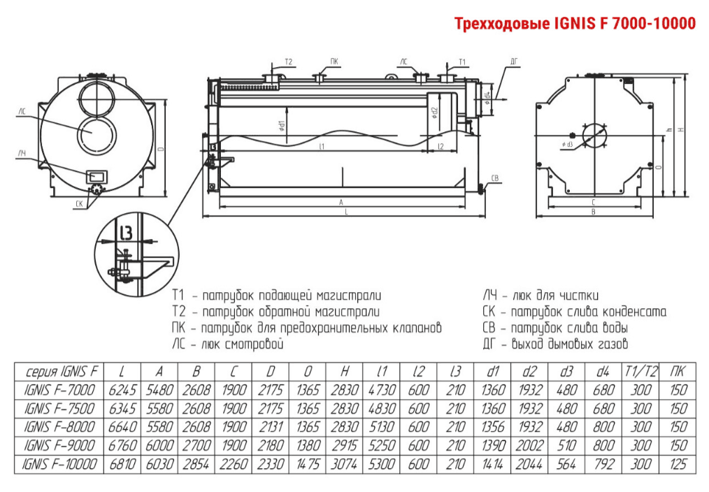 Технические характеристики водогрейного трёхходового котла ARCUS IGNIS F-7500