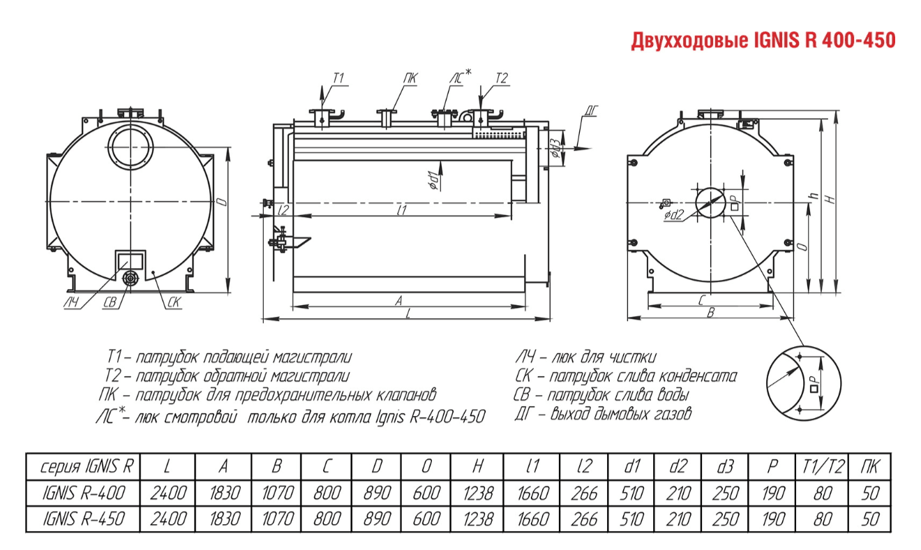 Технические характеристики водогрейного двухходового котла ARCUS IGNIS R-450