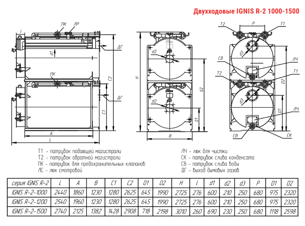 Технические характеристики модульного водогрейного трёхходового котла ARCUS IGNIS R-2-1200